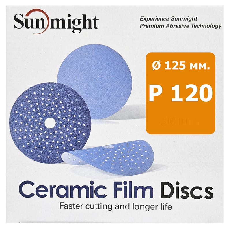 Шлифовальные круги с мультипылеотводом Sunmight Ceramic L712T – на пленочной основе для шлифования шпатлевки, грунтов и других лакокрасочных материалов.