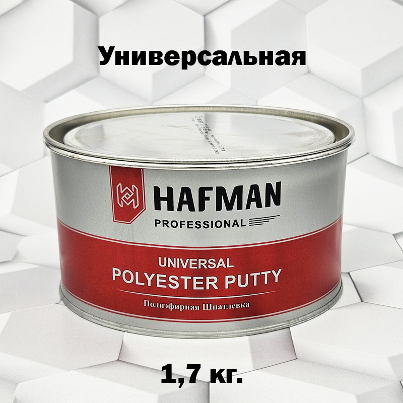 HAFMAN POLYESTER PUTTY 1,7кг. - универсальная полиэфирная шпаклевка с отвердителем предназначена для выравнивания поверхностей из металла, дерева, жёсткого пластика, стекла, бетона.